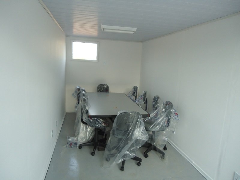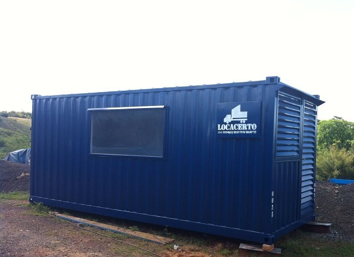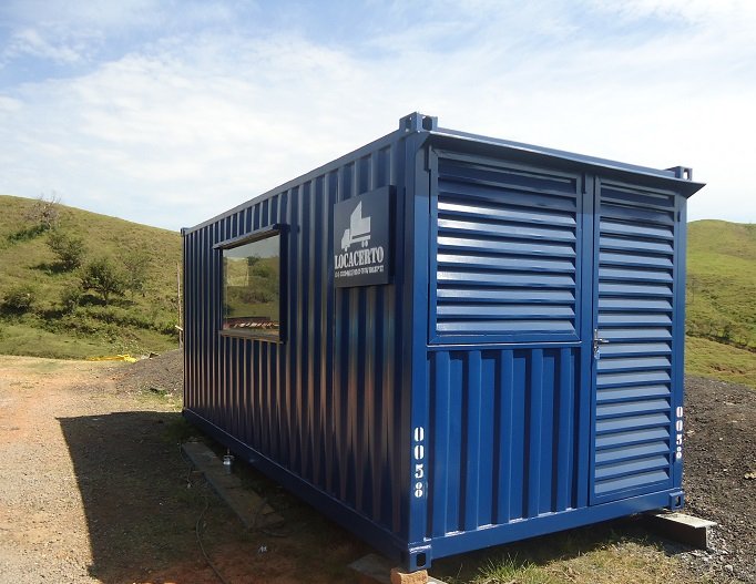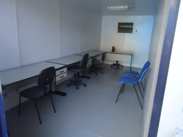 Opcionais: Vidro na lateral do container, mesa de escritório, mesa de reunião, cadeiras e ar condicionado