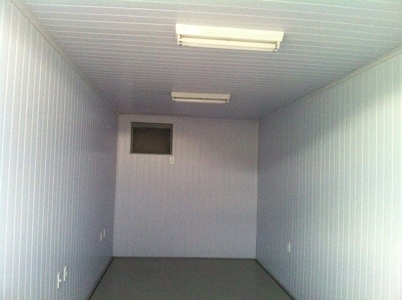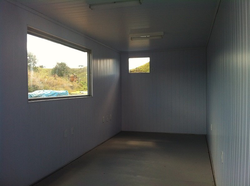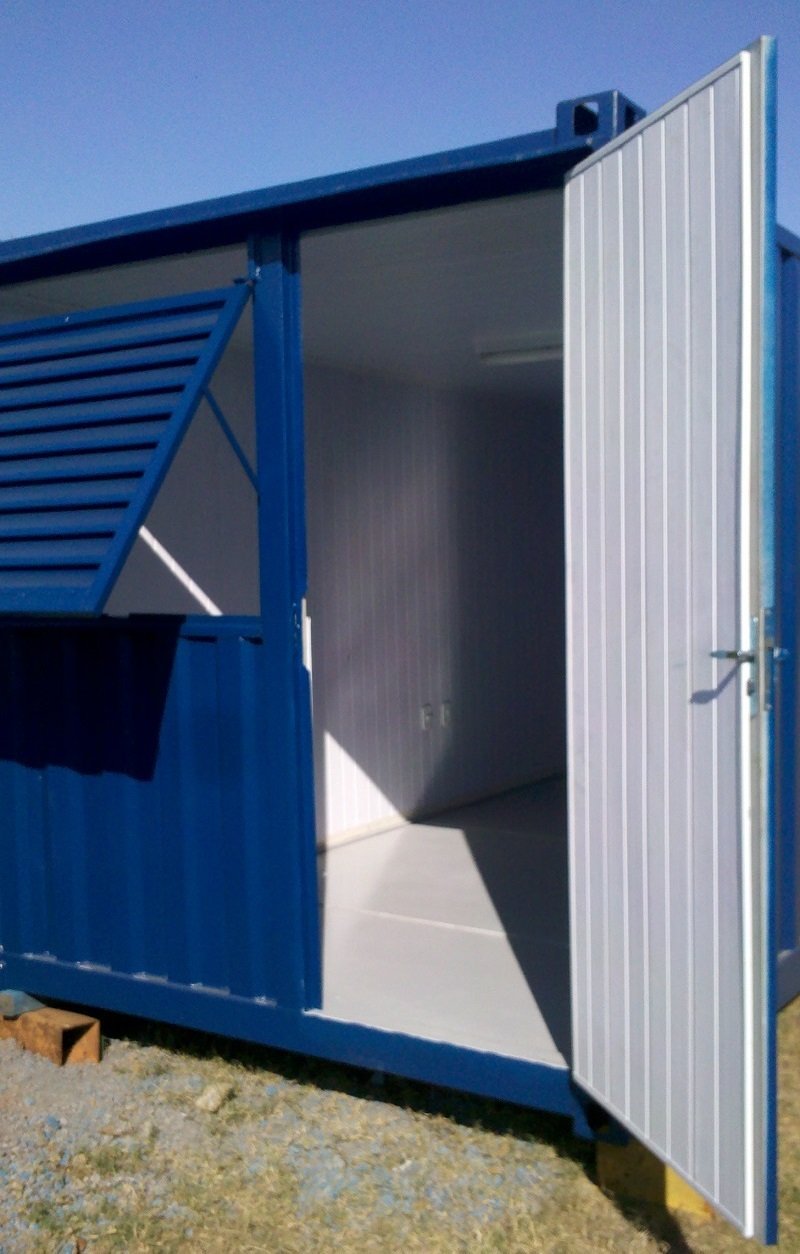 Contém: 01 porta, 01 janela, entrada para ar condicionado, isolamento termo acústico revestido em PVC ou GESSO branco, instalação elétrica (220v) com interruptor, tomada elétrica e telefônica (rede).
